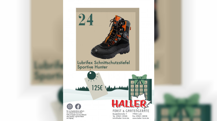 Der Sportive Hunter schützt Füße bei Waldarbeit und Jagd. Stabil, komfortabel und langlebig. Heute für 125 Euro bei Haller Forst und Gartengeräte. Solange verfügbar.